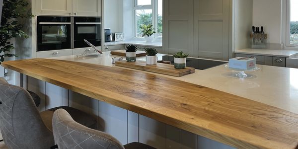 We supply the most beautiful solid wood worktops manufactured in our kitchen renovators workshop in Cowes by our own carpenters. From oak to walnut the choice is yours. Our solid wood worktops are routed to perfection with different profiles to match the cabinets.
